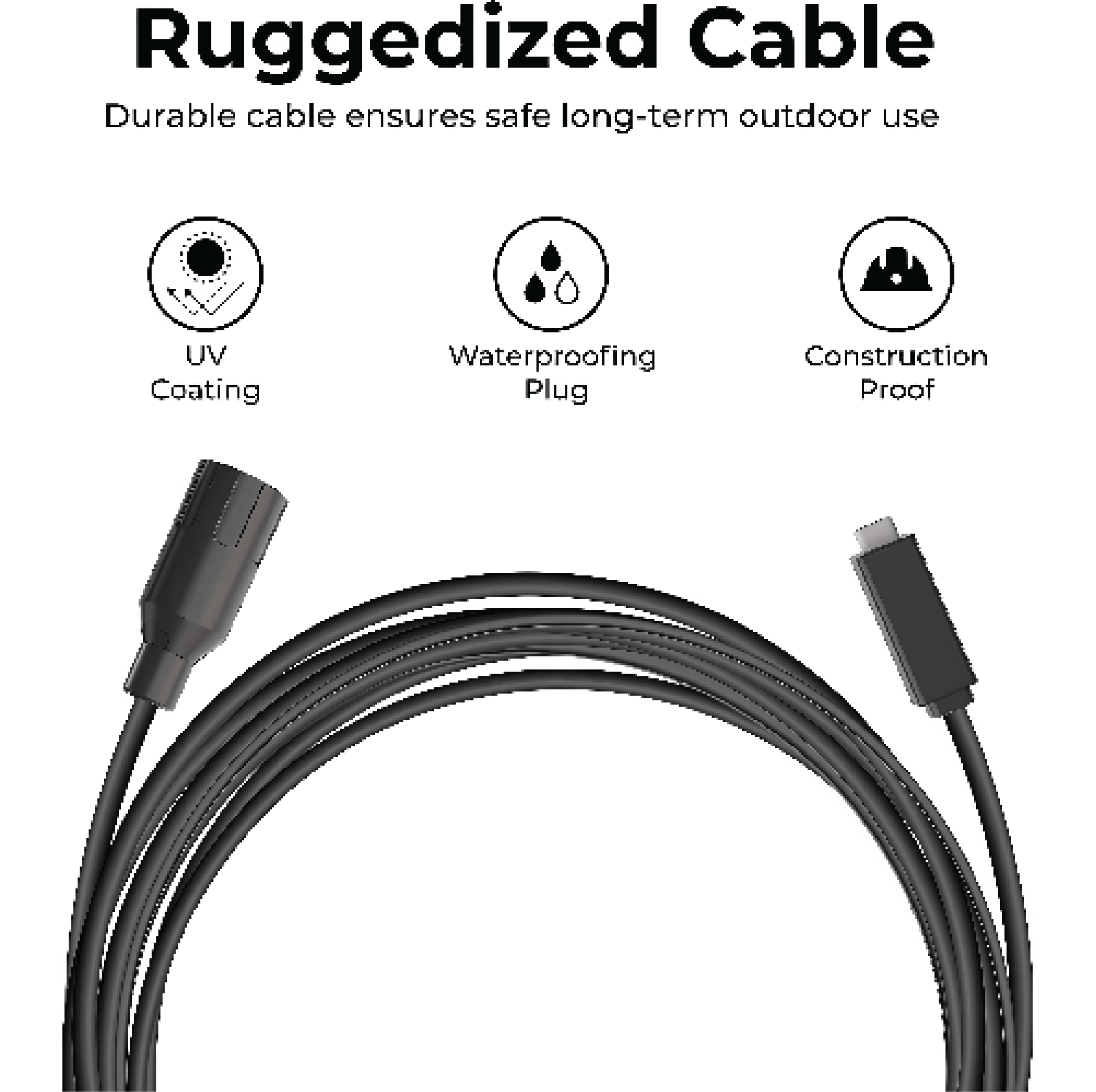 Connect to your camera from the ground using the 32ft (10m) durable, construction-proof cable. Our cable has a UV coating and a special waterproof plug and seal to ensure safe, long-term outdoor use.